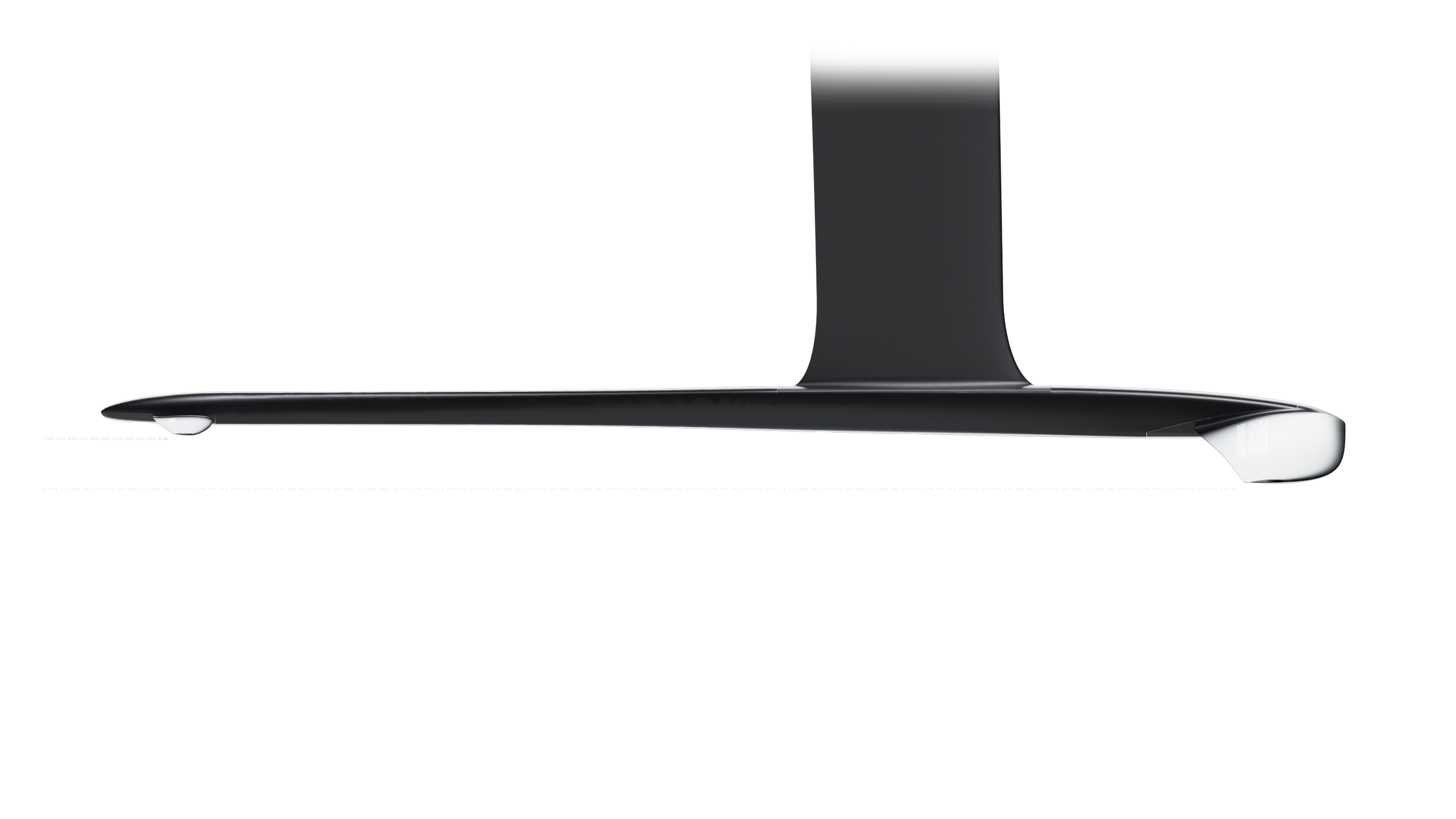 The Hurricane foils feature a carefully engineered anhedral geometry that enhances both control and stability. Unlike dihedral configurations, where the wings angle upward, our downward-angled anhedral wings offer more reactive handling and a steadier feel even in faster, more powered conditions. The precisely designed taper and sweepback angles promote efficient spanwise load distribution, boosting hydrodynamic performance. This shape also increases the foil’s immersion depth, reducing wake interference on the elevator for smoother pitch control and greater ride comfort. Overall, this specific anhedral design is key to delivering a smooth, forgiving, and highly responsive foil experience.