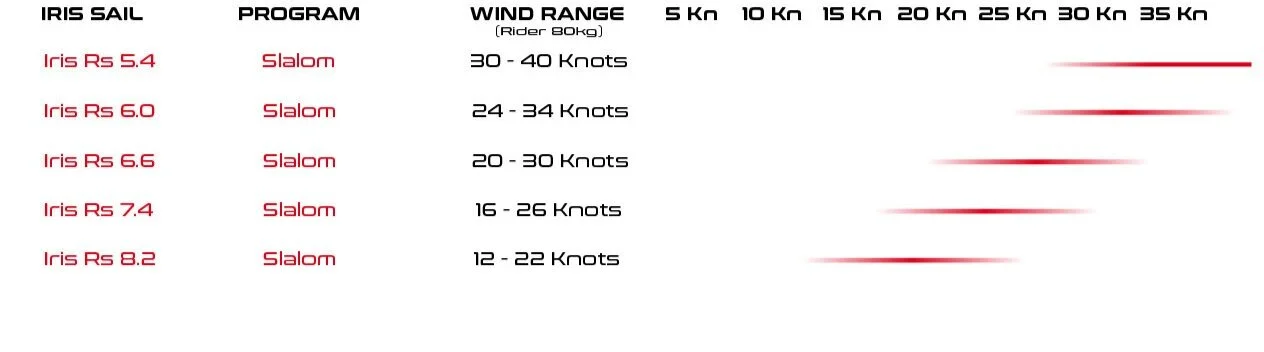 The Iris S is a slalom racing performance sail with 7 battens, 4 cams and large mast sleeve width. It is built with our hybrid construction made of monofilm and PXB 1,5mil Laminate.